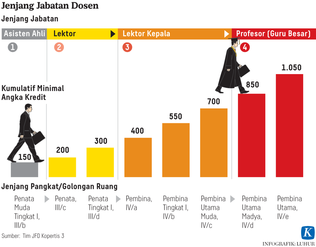 - Menimbulkan kesenjangan karier antara dosen muda dan senior